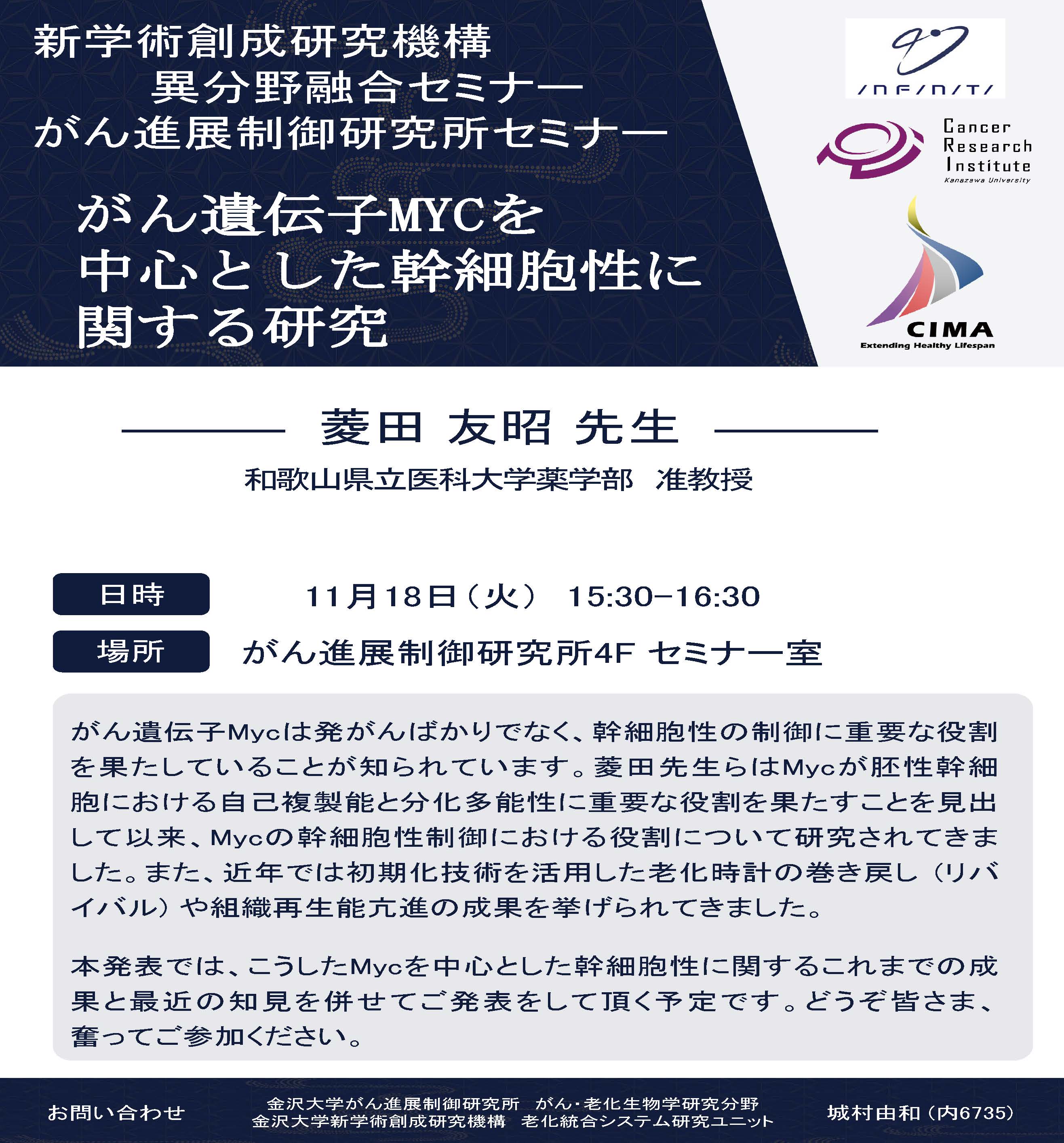 - Seminar Room, 4F, Cancer Research Institute, Kakuma Campus, Kanazawa University