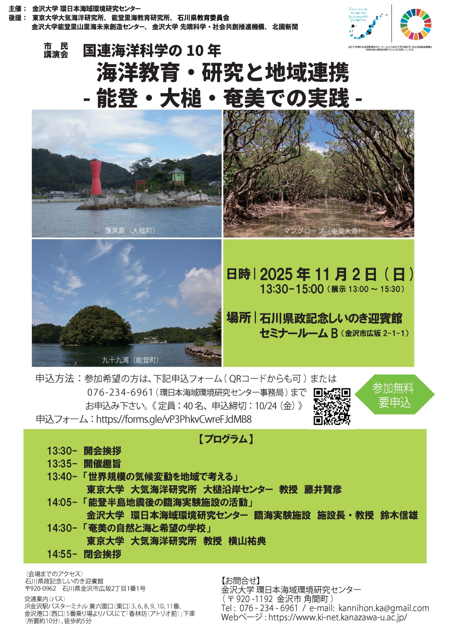 Supported by: Atmosphere and Ocean Research Institute of The University of Tokyo, Noto Satoumi Education Research Institute, Ishikawa Prefectural Board of Education, Kanazawa University Noto Resilience and Revitalization Center