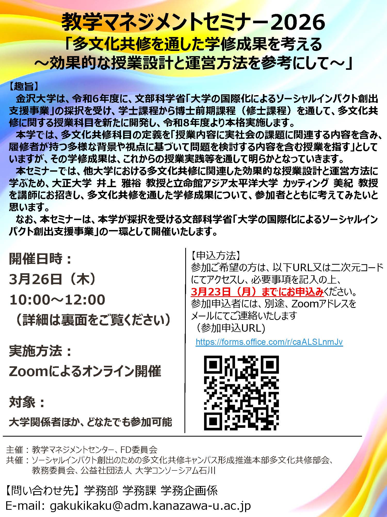 【主 催】金沢大学 教学マネジメントセンター,FD委員会