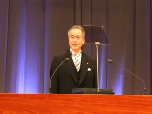 新入生の皆さん、本日の感激を忘れることなく、高い志、気概をもって、充実した学生生活を送ってください。私は人こそが財産、宝であると信じております。皆さんこそ社会の宝です。皆さんが、未来を切り拓き、世界で活躍するリーダーとして大きく成長されることを大いに期待しております。