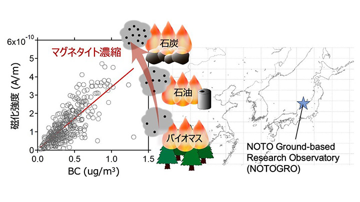 金沢大学環日本海域環境研究センターの松木篤教授、京都大学大学院エネルギー科学研究科の土屋望助教、富山大学学術研究部都市デザイン学系の川﨑一雄准教授らの共同研究グループは、大気エアロゾル試料の磁性とブラックカーボン(BC)(※1)の観測という独自の組み合わせによって、新たな大気汚染の判別法を確立し、燃焼由来マグネタイトの動態を明らかにしました。