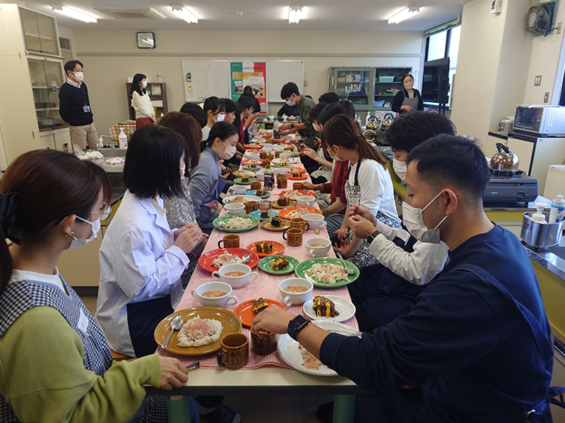参加した学生からは「先生と自分たちが作ったものの違いに驚いた」「シェフのこだわりについてのお話を聞き,自分が何を大切にするか,どう行動すべきかについて考えさせられた」「I liked the menu, it was different usual.」「ケーキはこの1ヵ月の中で一番おいしかったです」などの感想や,次回を希望する声が多くありました。
