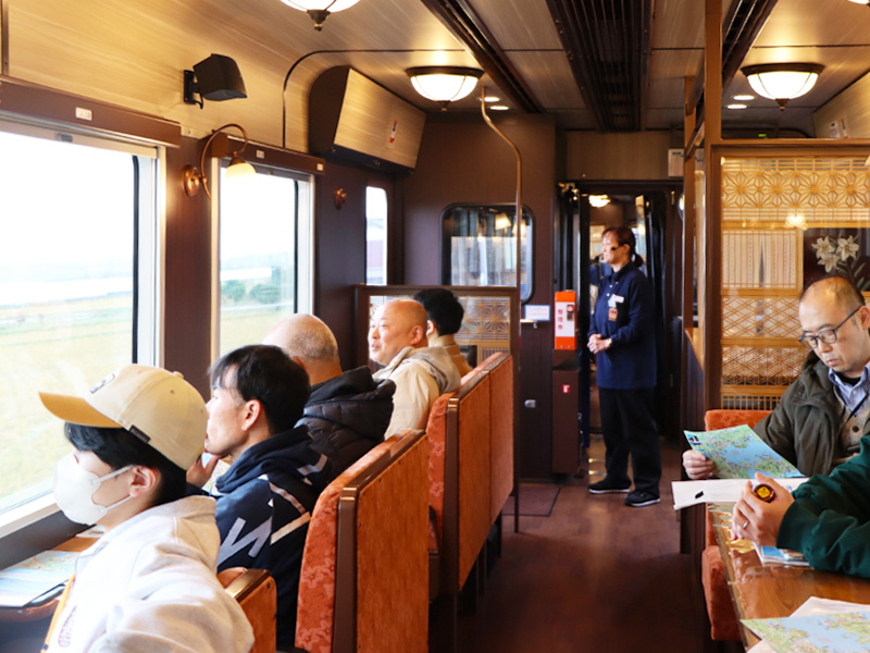 その後,のと鉄道「震災語り部観光列車」に乗車し,震災発生時の状況や沿線地域における復興の歩みについてお話を伺い,地域の魅力と現状への理解を深めました。
