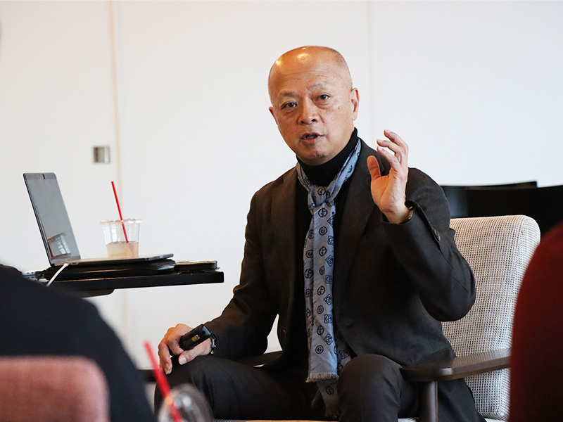 今回は,陶芸家で第十一代大樋長左衛門である大樋年雄氏をゲストに迎えました。イベント冒頭では,大樋氏がこれまでの歩みや活動などを紹介しました。その後の雑談の時間では,考え方やアートなどについて質問があがり,参加者は大樋氏の言葉に深く共感し,新たな視点に刺激を受けました。