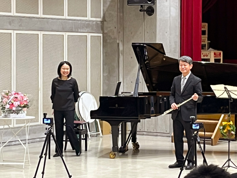 当日会場で演奏を聴いた学生からは,「クリスマスの気分を味わえました」「生の演奏は迫力がすごく,ピアノとフルートの掛け合いが素敵だった」「切ない音色から力強い音色まで,さまざまな表現がフルートでできることが印象的でした。2人で演奏されているとは思えないほど華やかで,思わず聞き入ってしまいました」「I really enjoyed it, the music was beautiful.」,教職員からは「いつもフルートの難曲に挑戦されていて素敵です!!」「演奏以外に全体の空気,お二人の優しい感じに癒やされます。素晴らしかったです」などの感想が聞かれました。