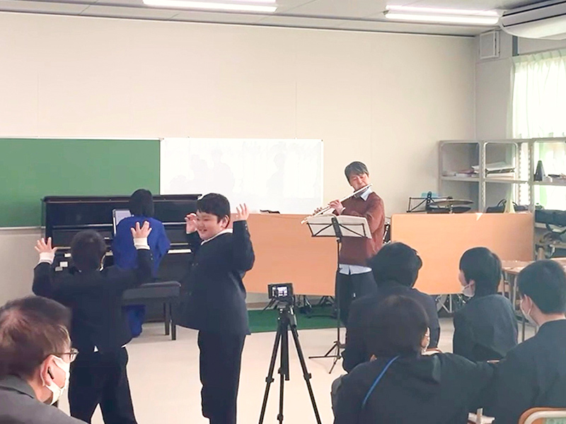 フルートとピアノの演奏に合わせて踊る児童生徒 -