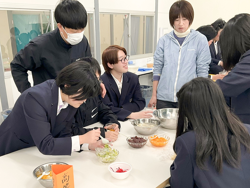 完成した「あんみつ」を皆で試食 -