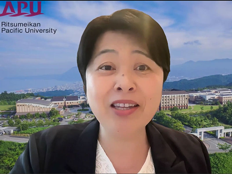 セミナーは,本学の森本章治理事からの開会挨拶で始まりました。続いて,大正大学教授の井上雅裕氏(芝浦工業大学名誉教授,一般社団法人日本マイクロクレデンシャル機構理事)が「大学教育における多文化共修の可能性と課題~国際PBLやマイクロクレデンシャルの実践と機能から学ぶ~」,立命館アジア太平洋大学教授のカッティング美紀氏(同大教育開発・学修支援センター長)が「多文化共修を支援するスチューデント・アシスタント(SA)の機能と効果~学修者中心の教育の実現のためのプラットフォーム~」と題した基調講演を行いました。