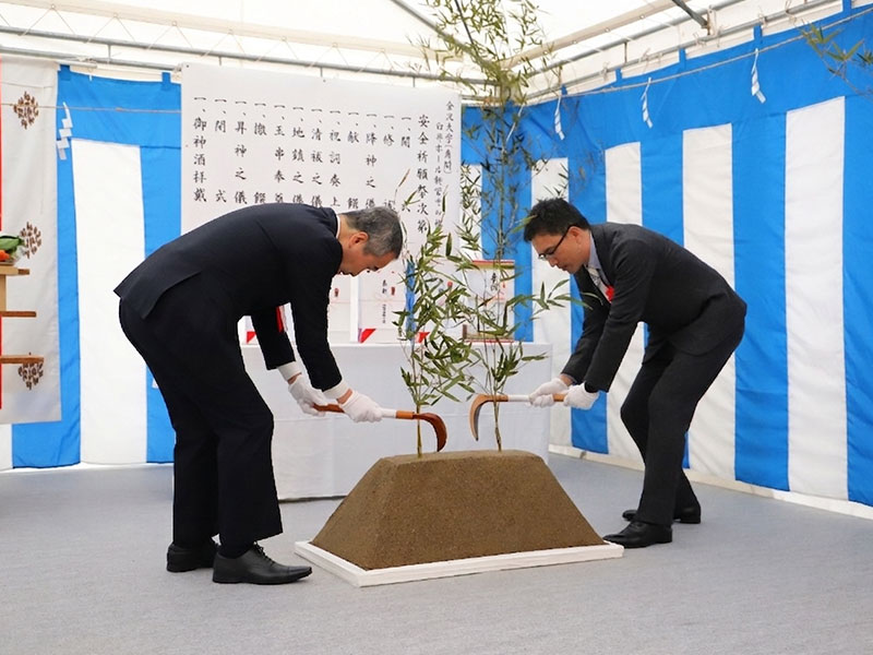 3月19日,本学角間キャンパス中地区(自然科学5号館西側)にて,建設予定の臼井ホール新営工事の安全祈願祭を挙行しました。