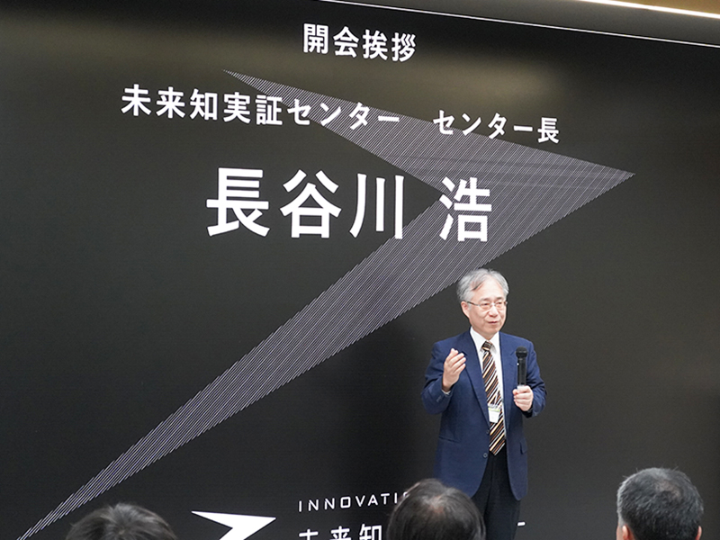 キックオフイベントでは未来知実証センターの長谷川浩センター長が開会挨拶を行い,同センター佐藤肇特任助教がELSI(※)の取り組みと共創企画室の活動テーマについて説明しました。その後,参画機関によるそれぞれの活動内容と共創企画室への期待について発表がありました。イベント終了後は施設見学会および懇親会を行い,客員研究員間の交流を行いました。