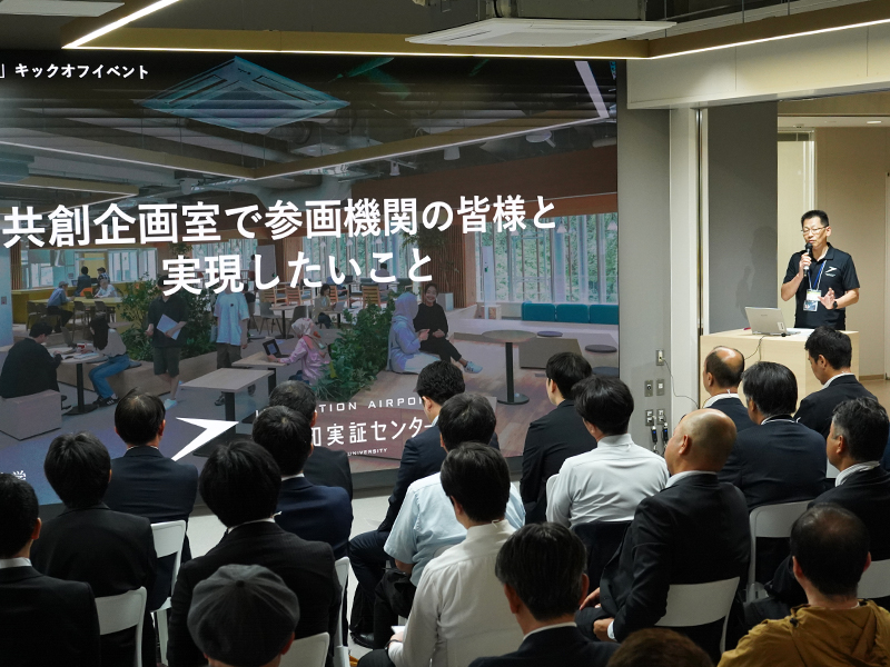 未来知実証センター共創企画室は,企業の社員や自治体の職員を客員研究員として受け入れ,URA(ユニバーシティ・リサーチ・アドミニストレータ―)伴走のもと,大学の研究者と日常的かつ継続的な交流を行い,社会のニーズを反映した研究開発につなげる仕組みとして令和7年4月から活動を開始しました。