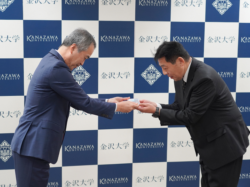 10月30日,能登の海洋深層水を活用し,バナメイエビの種苗生産から養殖までを手がける新たな水産業の展開を目指す株式会社能登アクアファームに対し,金沢大学認定ベンチャーの称号記を授与しました。今回の授与により,金沢大学認定ベンチャーは8社目となります。