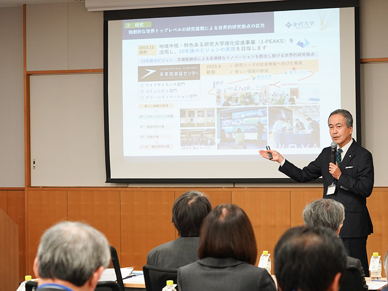 10月31日,自然科学系図書館にて,令和7年度金沢大学ステークホルダー協議会を対面とオンラインのハイブリッド方式で実施し,自治体・企業・地域団体・高校関係者など約100名が参加しました。