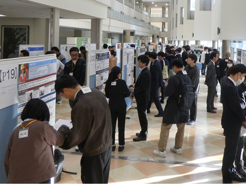 13社の担当者による企業紹介の後,自然科学本館アカデミックプロムナードにおいて,参加学生から約30点のポスター発表があり,企業の担当者に学生が自身の専門分野・研究内容について熱心に説明していました。