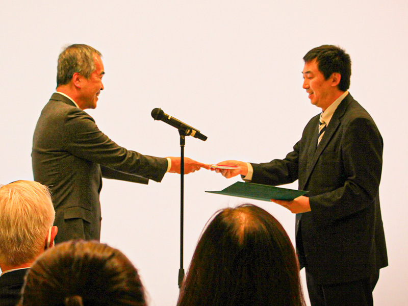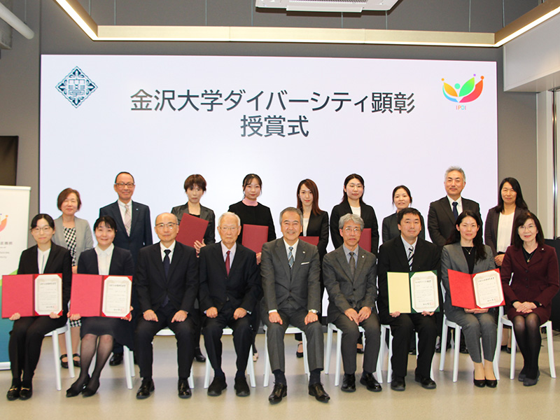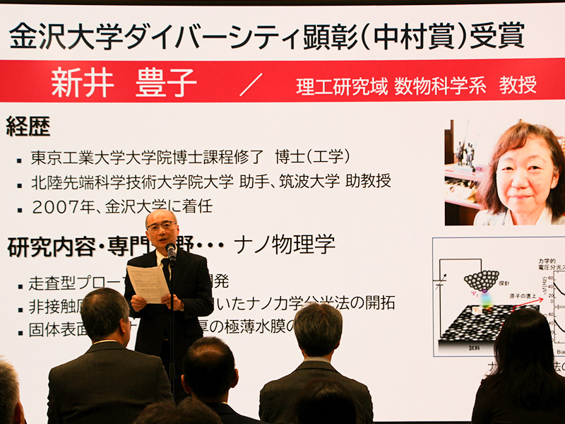 「ダイバーシティ顕彰」は,ダイバーシティ研究環境形成に貢献した教職員および優れた女性研究者などを表彰するために創設されたもので,受賞者には賞状が授与され,中村賞の寄附者である本学第10代学長の中村信一氏より祝辞が贈られました。