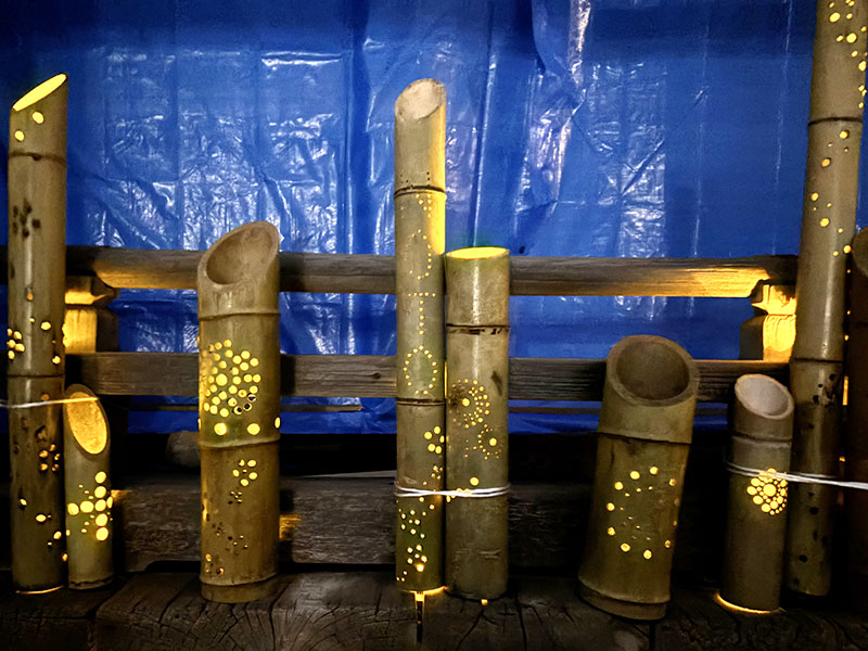 学生らが設置した竹灯籠 -