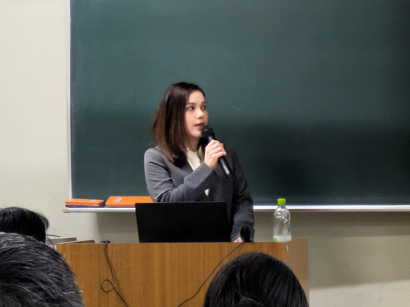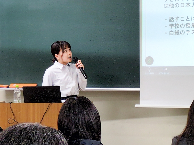 外国人集住地域や散在地域での調査結果を報告するブルーナさん -