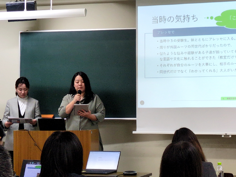 「居場所」の観点からアレッセ高岡での活動について説明する清水さんと青木さん -