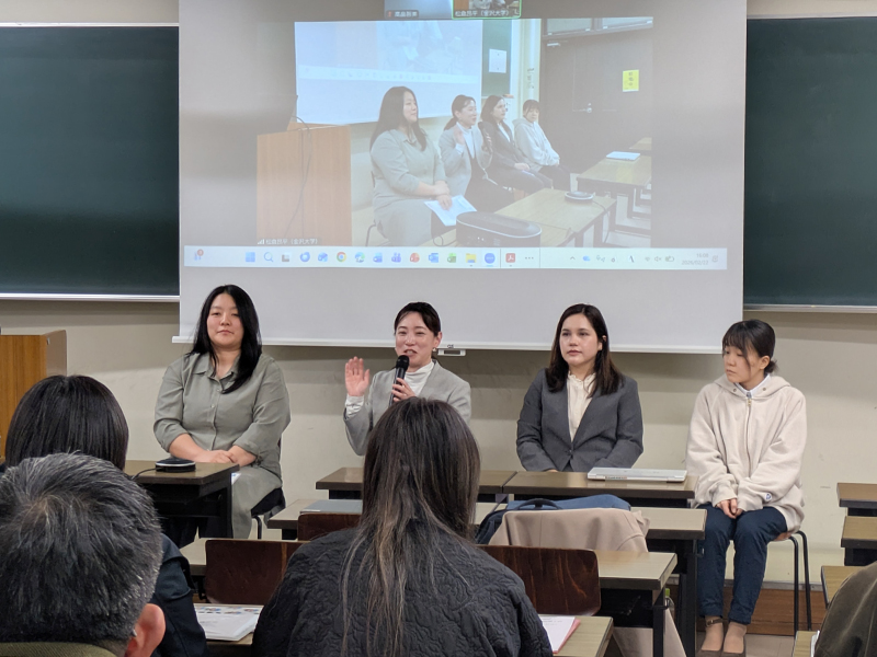 研究会では,人間社会研究域国際学系の市嶋典子教授による趣旨説明の後,人間社会学域国際学類日本語教育コース4年の藤井真子さんから「居場所としての日本語教室-支援者と学習者への調査を通して-」として,人間社会環境研究科人間社会環境学専攻博士後期課程1年のデ・アギアール・アゼヴェド・ブルーナさんから「在日ブラジル人児童生徒の日本語教育における居場所の構築」として,外国につながる子どもへの支援の場に関わる調査結果の報告がありました。次に,NPO法人アレッセ高岡の清水ステファニーユキエ氏と青木由香氏から「『ここにいていい』と思える場所づくり」と題して,居場所という観点から,アレッセ高岡での外国につながる子どもへの支援の理念と実践について発表がありました。