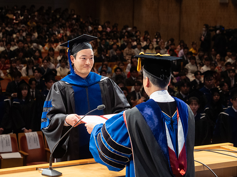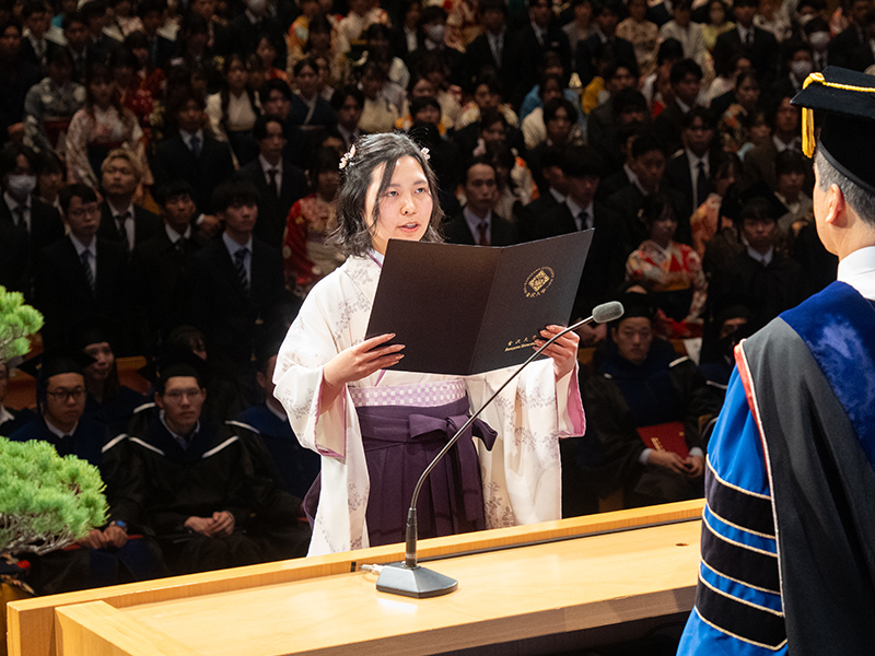 式では, 和田隆志学長から卒業者・修了者へ,人として成長し続け,挑戦を恐れず,生涯にわたり学び続けてほしい,と激励の言葉がかけられました。
