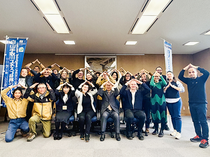 シンポジウム後には,海外招待者が白山市を訪問し,田村敏和白山市長を表敬訪問しました。その後,白山ユネスコエコパークおよび白山手取川ユネスコ世界ジオパークの拠点である白峰地区においてフィールド研修を実施しました。本取り組みは,ユネスコエコパークと世界ジオパークを活用した大学主導の国際教育連携モデル構築に向けた重要な機会となりました。