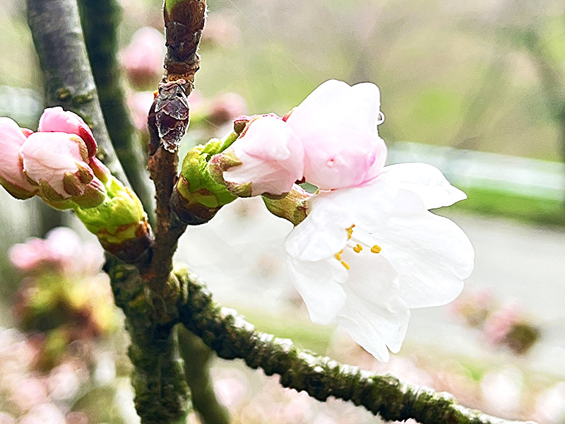 4月1日,金沢大学角間キャンパスの標本木で,桜の花が5輪以上開花しているのを確認しました。