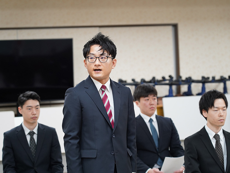 今後の決意と抱負を述べる新規採用者